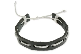 Bransoletka Wiązana skórzana Męska bransoletka wykonana ze skóry i sznurka jubilerskiego koloru białego. W dwóch kolorach białym i czarnym. Posiada regulowan...