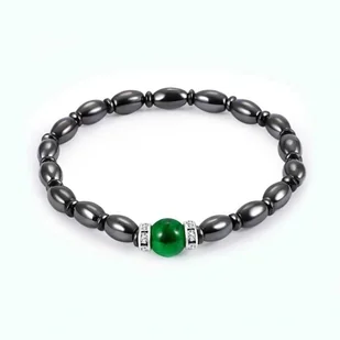 Dane techniczne: Typ: Bransoletka Płeć: Unisex Materiał: hematyt Kolor: czarny + zielony Waga: