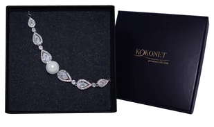 Elegancka bransoletka ślubna srebrna z perłą błysk Klasyczna biżuteria ślubna w postaci regulowanej srebrnej bransoletki z perłami i łezkami z cyrkonii spraw...