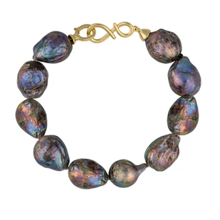 ENAYA NELLIE NOIR Bransoletka duże perły barokowe czarne owalne zapięcie srebro
