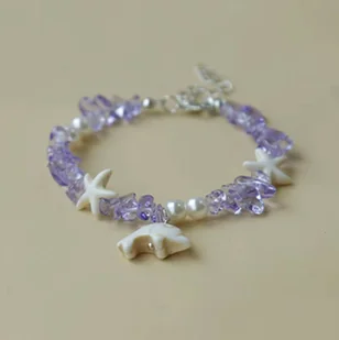 Fioletowa Bransoletka Perła Muszle Kamienie Ręcznie Robiona Summer Shells