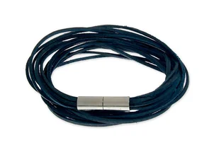 Bransoletka z magnesem skórzana Bransoletka ze skórzanych granatowych rzemyków. Zapięcie w postaci magnesów. Do podwójnego owinięcia nadgarstka. ✔ Produkt jest dostępny ✔ Polska marka ✔ Fabryczne opakowanie Informacje Marka: Jubileo Kraj produkcji: