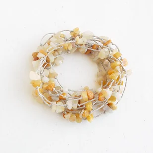 Naturalna bransoletka lniana z kamyczkami jadeitu Jadeit ma jesienne odcienie kolorów żółtego, kremowego i jasnobrązowego Można też nosić jako naszyjnik Materiały: jadeit kamienie 4-8 mm, len naturaln ...