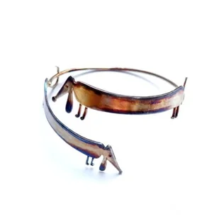 Ta bransoletka jest doskonałym wyborem dla miłośników ręcznie robionej biżuterii, którzy poszukują czegoś niepowtarzalnego i wyjątkowego. Daj się ponieść magii unikalnego wzornictwa i dodaj niezwykłego uroku swojemu wyglądowi dzięki tej uroczej bransoletce srebrnej z dwoma jamnikami na drucie. NR KATALOGOWY : Z64BBR
