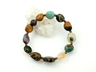 Damska bransoletka na podwójnej gumce z kamykami polerowanego jaspisu oceanicznego, rękodzieło. Obwód bransoletki 16 cm. Szerokość 11 mm. Waga bransoletki 15...