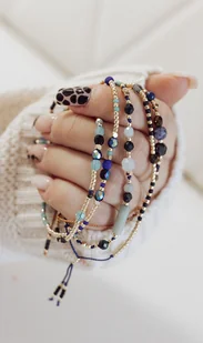 Komplet 5 bransoletek w kolorach Oceanu :) Niebieskie, chabry, turkusy, morskie a do tego złoto ❤️ Bransoletki to mieszanka naturalnych kamieni oraz kryształków. Każda z nich zrobiona jest na mocnej jedwabn ...