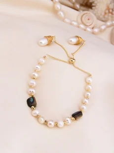 L'Atelier de Gaia Pozłacana bransoletka z perłami i masą perłową