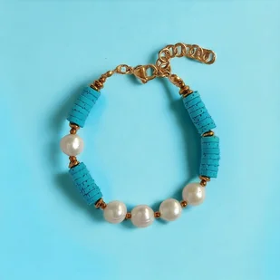 LIMITOWANA bransoletka : kolekcja summer ocean : PERŁY & LAWA turkusowa