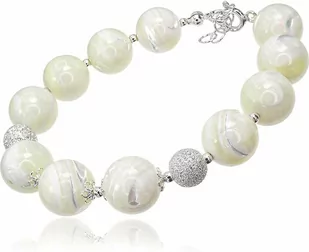 Przepiękna elegancka bransoletka z naturalną masą perłową w srebrze. Elegancka bransoletka z naturalną masą perłową w srebrze. Ozdobiona kulami diamentowanymi. Niezwykły urok. Piękna biżuteria o naturalnej urodzie.