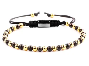 Modna bransoletka na czarnym sznurku z czarnymi i złotymi kuleczkami
