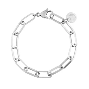 Bransoletka damska wykonana z ręcznie robionego łańcucha o płaskich, dużych, prostokątnych ogniwach, splot paper clip. Możliwość zapięcia w dowolnym miejscu. Bransoletka łańcuch ze stali szlachetnej jest wyborem doskonałym dla osób szukających połączenia nowoczesności z trwałością. Bransoletka prezentuje się bardzo nowocześnie i elegancko. Jego różnorodność i elegancja sprawiają, że jest to atrakcyjny wybór dla osób szukających zarówno subtelności, jak i wyraźniejszego akcentu w swojej biżuterii.