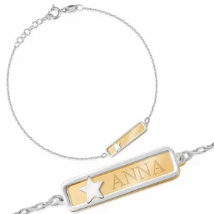 Srebrna Bransoletka Złocona 925 Gwiazdka Tabliczka ID Grawer - Murrano.