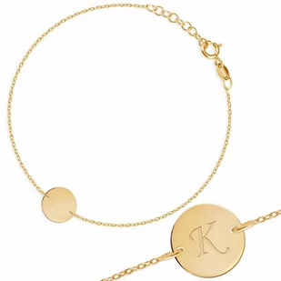 Srebrna Bransoletka Złocona 925 Kółeczko Inicjał Grawer