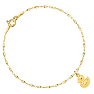 Bransoletka ze srebra próby 925 pozłacanego 24-karatowym złotem Bransoletka została wykonana z łańcuszka oraz zawieszki w kształcie kaczuszki Długość bransol...