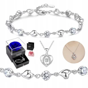 Ślub, Komunia, Przyjęcia, Święta ✳️ Dodatkowo ! Wykonana z najwyższej jakości bransoletka srebrna z cyrkoniami. ☑️ Zamówienie zapakujemy w gustowną szkatułkę z piękną wieczną różą. Piękny i elegancki naszyjnik z bransoletką sprawdzi się jako stylowy prezent dla każdej kobiety.