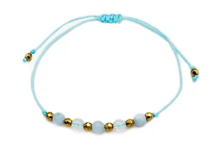 Niebieska sznurkowa bransoletka kryształ górski jadeit Równowaga