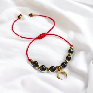 OCHRONNA bransoletka - czarny turmalin - lunula : czerwony sznurek
