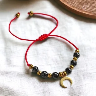 OCHRONNA bransoletka - czarny turmalin - lunula : czerwony sznurek
