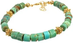 Piękna bransoletka z naturalnymi turkusami na pozłacanym srebrze Oryginalny turkus oszlifowany w etnicznej formie heishe. Piękna bransoletka o naturalnej urodzie. TURKUS jest świętym kamieniem Indian. Chroni przed negatywną energią, wzmaga intuicję i chęć życia. Jest to kamień wizji, jasności i jedności.