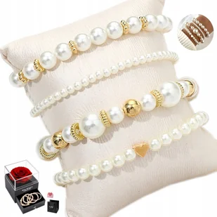 PERŁY Bransoletka Damska Perłowa ZESTAW Na Prezent KILKA SZTUK Pozłacana