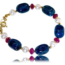 Elegancka wyjątkowa bransoletka z prawdziwych pereł, naturalnych rubinów i apatytów na złotym srebrze. Piękne połączenie: prawdziwe białe perły, naturalne rubiny i apatyt w przepięknych barwach. Wyłącznie prawdziwe perły ze słodkowodnej hodowli. Rubin to kamień dający energię, umacniający pewność siebie, przyciągający i wzmacniający uczucia.