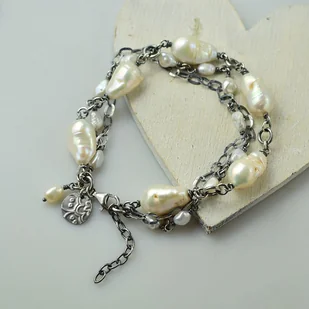 Bransoletka wykonana w całości ze srebra (próba 925) z perłami. Całość została zoksydowana (przyciemniona) i wypolerowana. Długość regulowana 21 - 25 cm. Biżuteria zostanie ozdobnie zapakowana. ...
