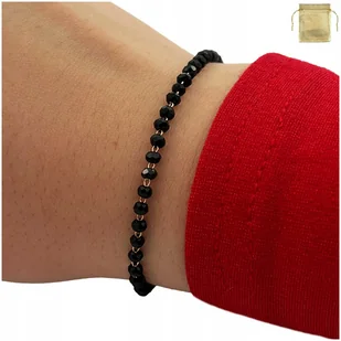 Piękna Damska Bransoletka Koraliki / Kryształki / Czarna / Regulowana 18K