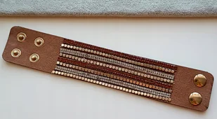 Piękna Efektowna Szeroka Brązowa Bransoletka Cyrkonie Na Zatrzask