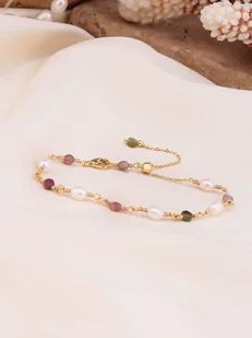 Pierres de Jade Pozłacana bransoletka z agatami i perłami