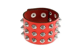 Bransoletka z kolcami trzyrzędowa Skórzana bransoletka nabijana trzema rzędami ćwieków. Wysokiej jakości skóra, kolce okrągłe w kolorze hematytowym. Kolor cz...