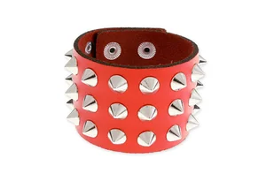 Bransoletka z kolcami czerwona Bransoletka nabijana trzema rzędami ćwieków. Wysokiej jakości czerwona skóra. Regulowany obwód. ✔ Produkt jest dostępny ✔ Polska marka ✔ Fabryczne opakowanie Informacje Marka: Jubileo Kraj produkcji: