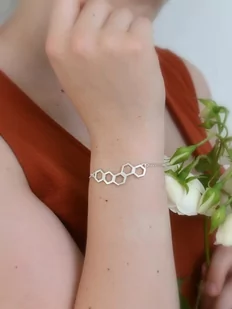 Plastry Miodu Białe – Bransoletka Srebrna Subtelny urok natury na Twoim nadgarstku – bransoletka inspirowana plastrami miodu. Delikatna bransoletka wykonana ze srebra to wyjątkowa propozycja dla miłośniczek minimalistycznej i eleganckiej biżuterii. Geometryczny kształt plastra miodu na łańcuszku dodaje jej naturalnego piękna i ponadczasowego stylu. Detale, które wyróżniają: Materiał: Srebro próby 925 – szlachetny blask, idealny na każdą okazję.