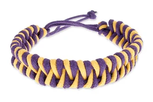 Polska Kolor: fioletowy, żółty Materiał: sznurek jubilerski woskowany Szerokość: 1,5 cm Obwód: uniwersalny regulowany, min.