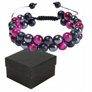 Podwójna Bransoletka Regulowana Czarny i Różowy Połysk + Pudełko