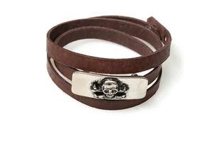 Potrójna bransoletka skórzana z motywem czaszki Bransoletka z brązowej skóry z metalowym motywem czaszki do 3-krotnego owinięcia nadgarstka. Zapinana jest na...