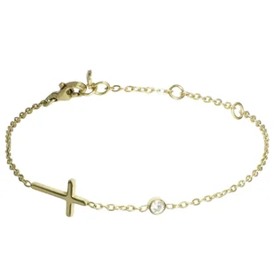Pozłacana Bransoletka Damska ze Stali Szlachetnej z Krzyżem i Kryształem Elegancka Prezent Chrzestny