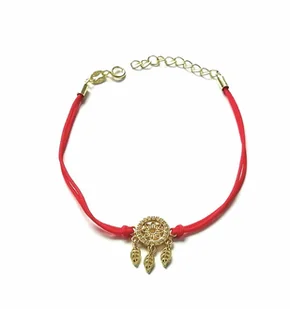 Pozłacana Bransoletka na czerwonym sznurku łapacz snów z cyrkoniami Pozłacana Bransoletka łapacz snów z cyrkoniami na czerwonym sznurku. Pozłacana, bransolet...