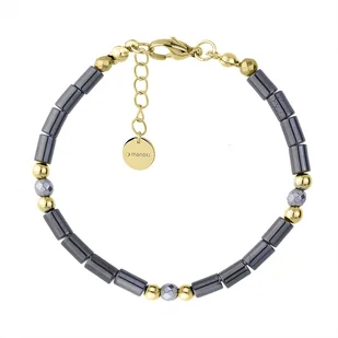 Bransoletka z drobnego, srebrnego hematytu ze złotymi kuleczkami. Bransoletka wykonana z hipoalergicznej stali szlachetnej 316L, pozłacanej trwałą metodą PVD. Bransoletka prezentuje się niezwykle efektownie i doda pazura każdej stylizacji. Kolor: srebrny, złoty Materiał: stal szlachetna Kamień: