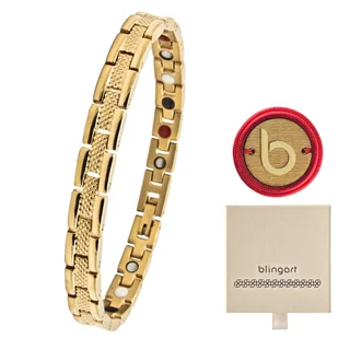 Pozłacana magnetyczna damska bransoletka Wyjątkowy blask stali chirurgicznej – Zachwyć się niepowtarzalnym połyskiem najwyższej jakości stali 316L, idealnym na każdą okazję. Nowoczesny design z perforowanym paskiem – Wyróżnij się unikalnym wzorem, który przyciąga wzrok i dodaje charakteru Twoim stylizacjom. Wsparcie zdrowia dzięki magnetyzmowi – Poczuj korzyści lecznicze technologii magnetycznej, poprawiającej krążenie i relaksującej ciało. Wszechstronność i elegancja – Dopełnij zarówno codzienne, jak i wyjątkowe stylizacje odważnym i nowoczesnym akcentem. Idealny prezent łączący piękno i zdrowie – Podaruj luksus i harmonię w jednym, doskonałym upominku dla bliskiej osoby lub dla siebie.