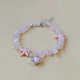 Różowa Bransoletka Perła Muszle Kamienie Ręcznie Robiona Summer Shells