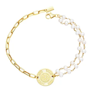 Zapięcie karabinkowe Typ bransoletki: Bransoletka z koralików Kolor bransoletka: złoty Wzór: bez kamieni Rodzaj produktu: Bransoletka Kolor perły: