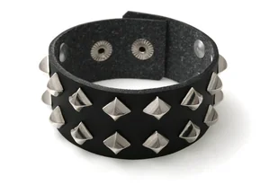 Bransoletka z Kolcami skórzana Skórzana bransoletka nabijana dwoma rzędami ćwieków. Wysokiej jakości skóra, kolce kwadratowe w kolorze ciemnego srebra. Regul...