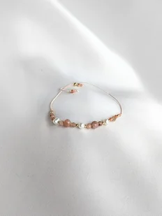 Bogato zdobiona bransoletka z kamieni słonecznych różnych rozmiarów, naturalnych pereł oraz pozłacanych elementów dekoracyjnych. Bransoletka na jedwabnej nici to synonim kobiecości - delikatna, piękna ...