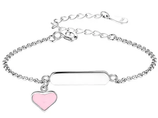 Srebrna bransoletka 925 dla dziecka z różowym emaliowanym serduszkiem