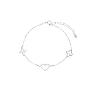 Delikatna srebrna bransoletka próby 925 z uroczym motywem serca i kwiatów. Połączenie tych symboli podkreśla miłość, delikatność i naturalne piękno. Minimali...