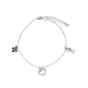 Srebrna bransoletka z trzema srebrnymi zawieszkami: serce, nieskończoność i koniczyna. Wykonana z najwyższej jakości srebra próby 925. Fabrycznie nowa.
