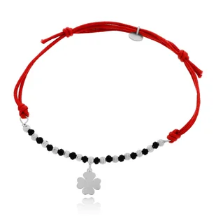 Srebrna bransoletka czerwony sznurek koniczynka pr. 925
