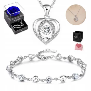 Ślub, Komunia, Przyjęcia, Święta ✳️ Dodatkowo ! Wykonany z najwyższej jakości naszyjnik srebrny z cyrkonią. ☑️ Zamówienie zapakujemy w gustowną szkatułkę z piękną wieczną różą. Piękny i elegancki naszyjnik z bransoletką sprawdzi się jako stylowy prezent dla każdej kobiety. ☑️ Wieczna róża wykonana z prawdziwego kwiatu.