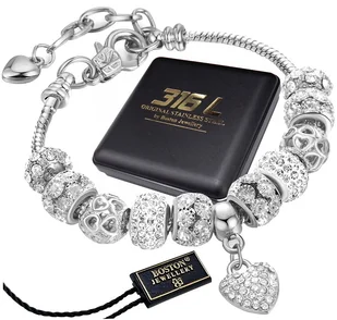 SREBRNA BRANSOLETKA DAMSKA MODUŁOWA Z CHARMSAMI SERCE REGULOWANA ORYGINAŁ Boston Jewellery