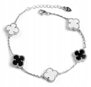 Srebrna BRANSOLETKA Damska SREBRO pr.925 Koniczyna Onyks Perłowa Koniczynka